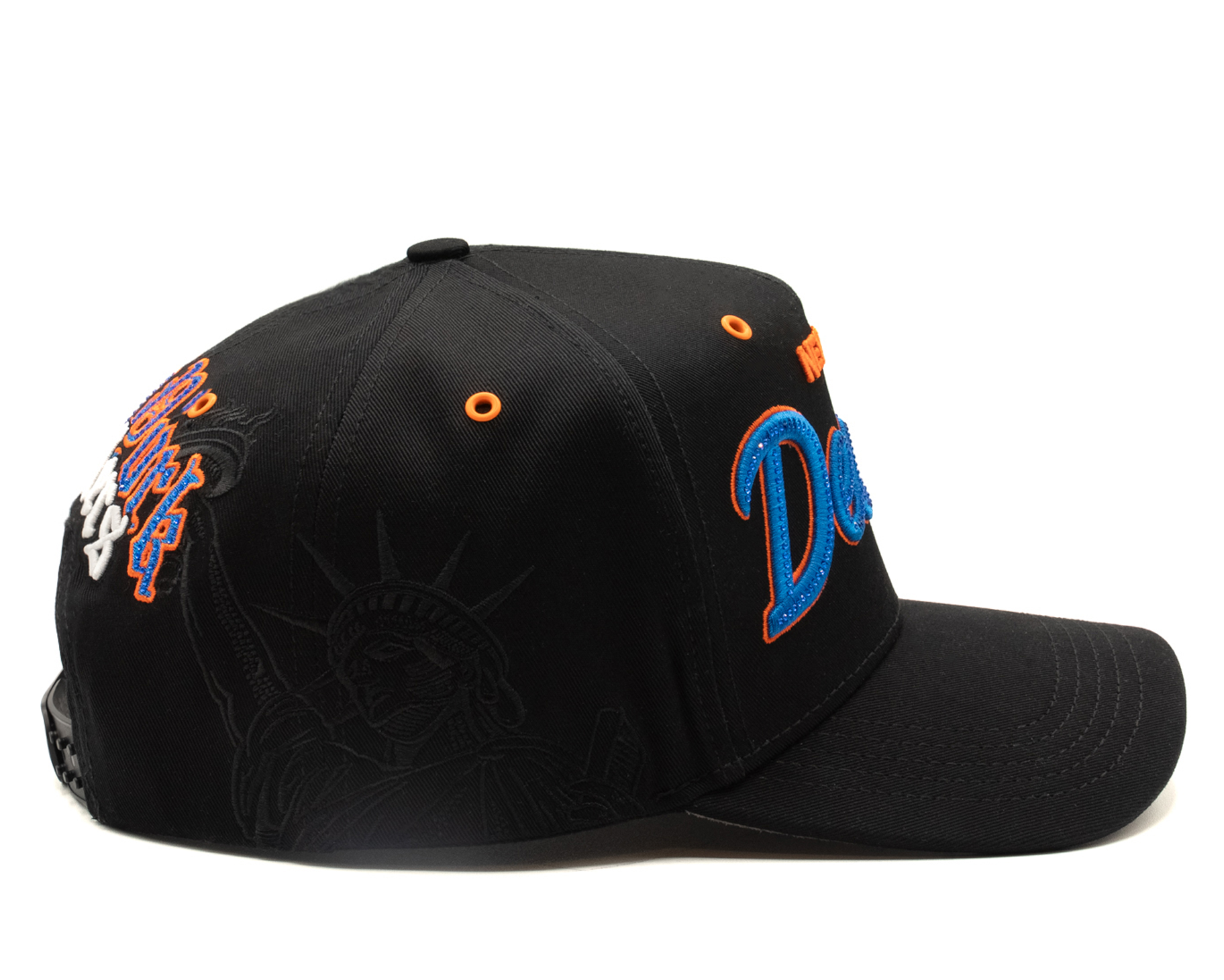 5-panel hat with an embroidered logo. Adjustable snapback.