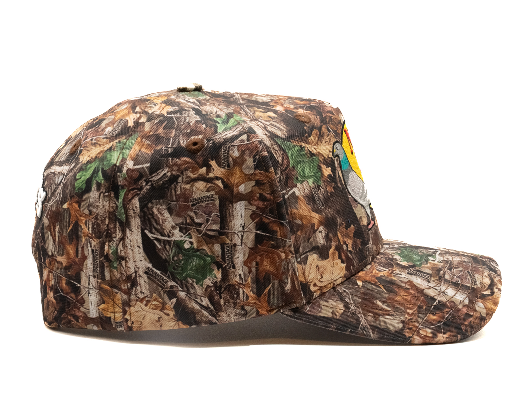 5-panel hat with an embroidered logo. Adjustable snapback.